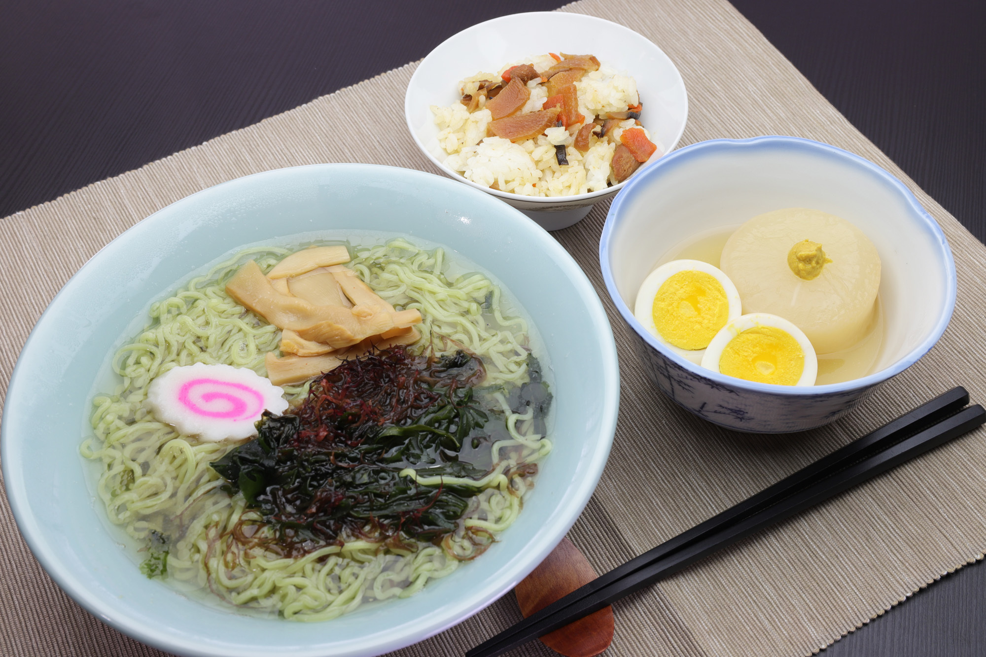 昆布の粉末を練り込んだ、風味豊かな独特のシコシコ麺